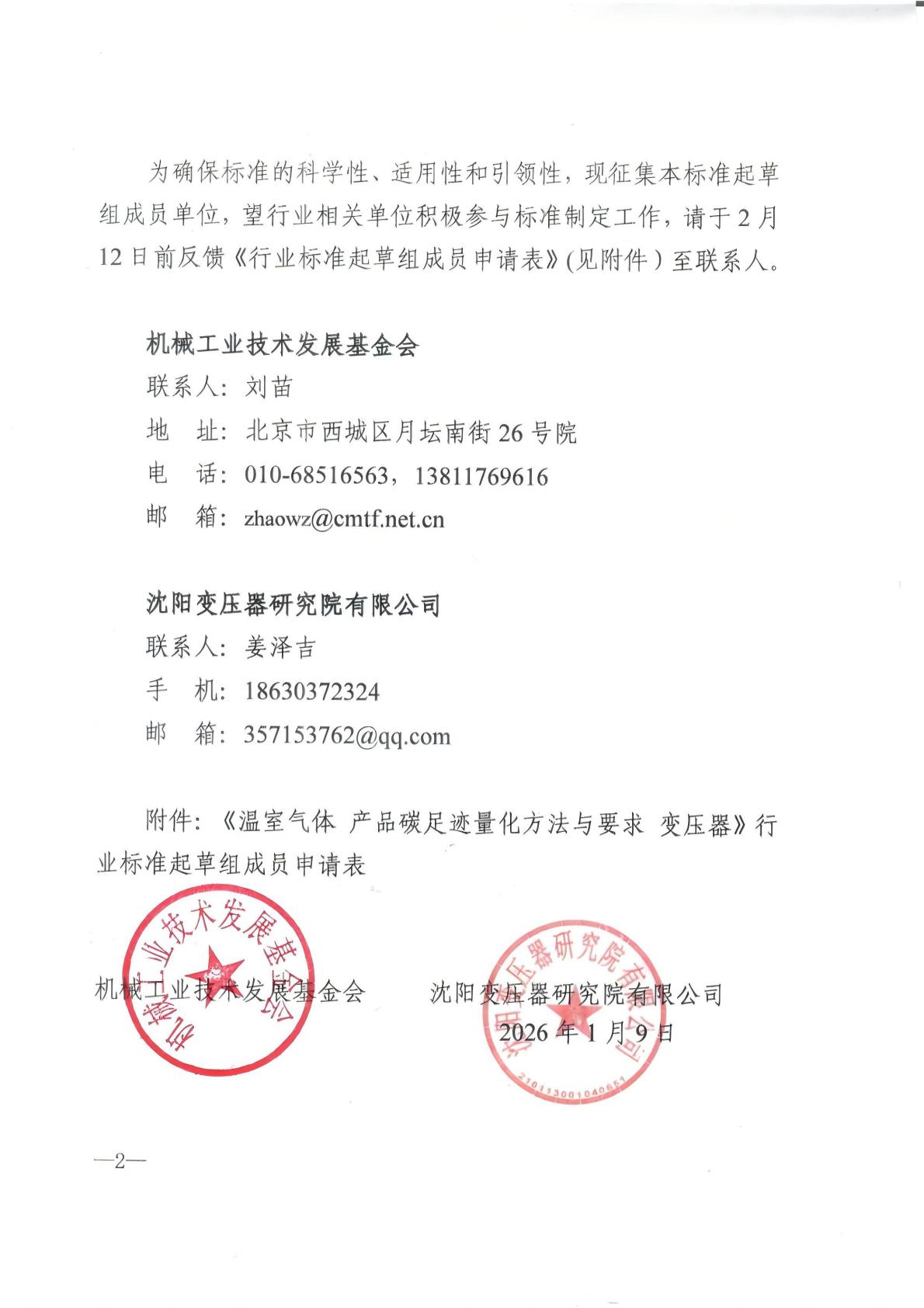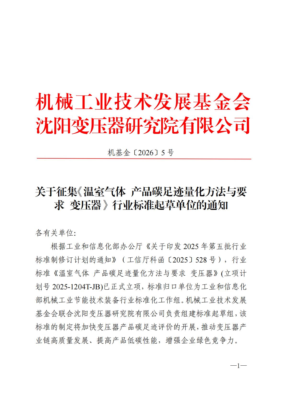 关于征集《温室气体 产品碳足迹量化方法与要求 变压器》行业标准起草单位的通知