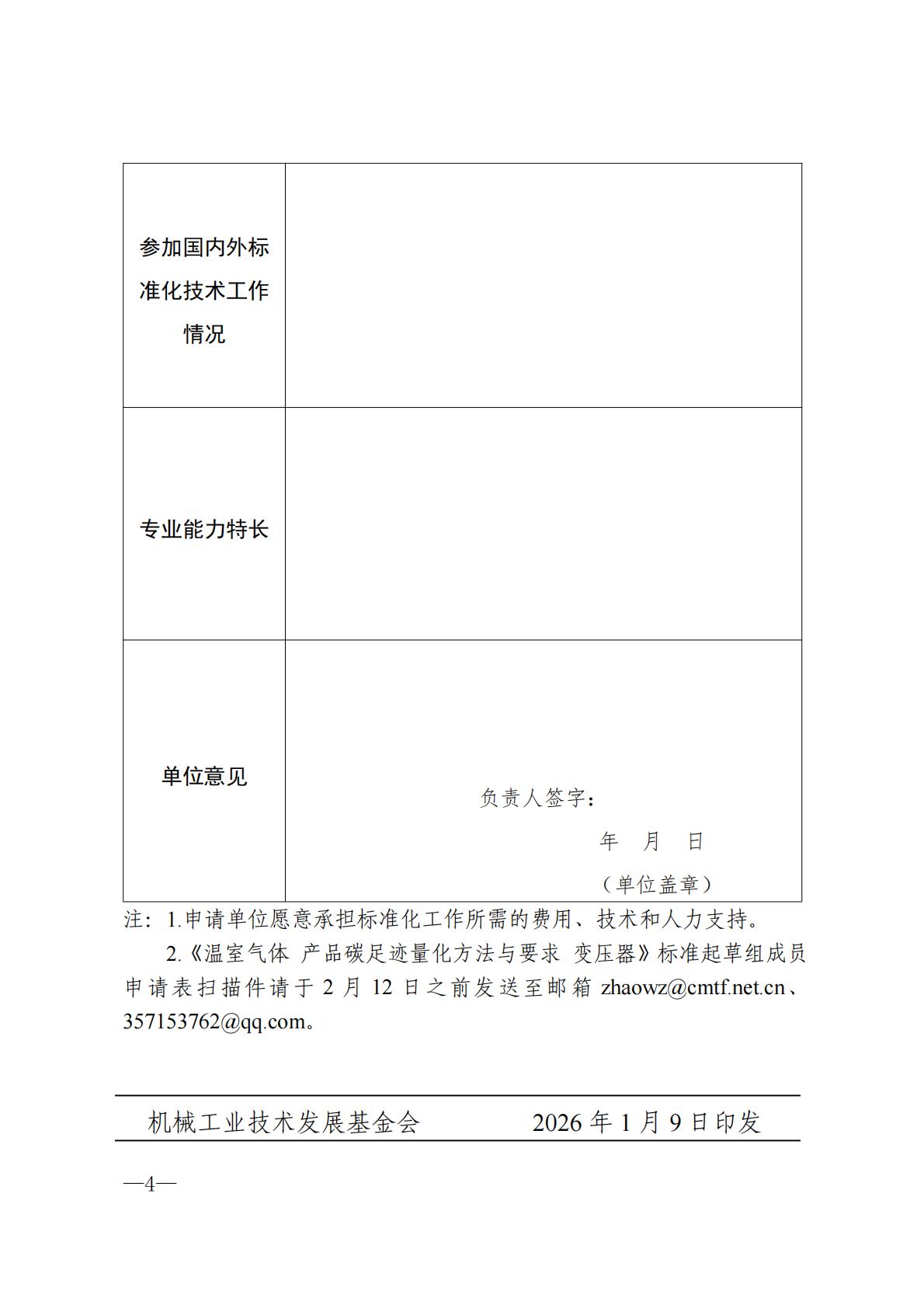 附件:《温室气体 产品碳足迹量化方法与要求 变压器》行业标准起草组成员申请表