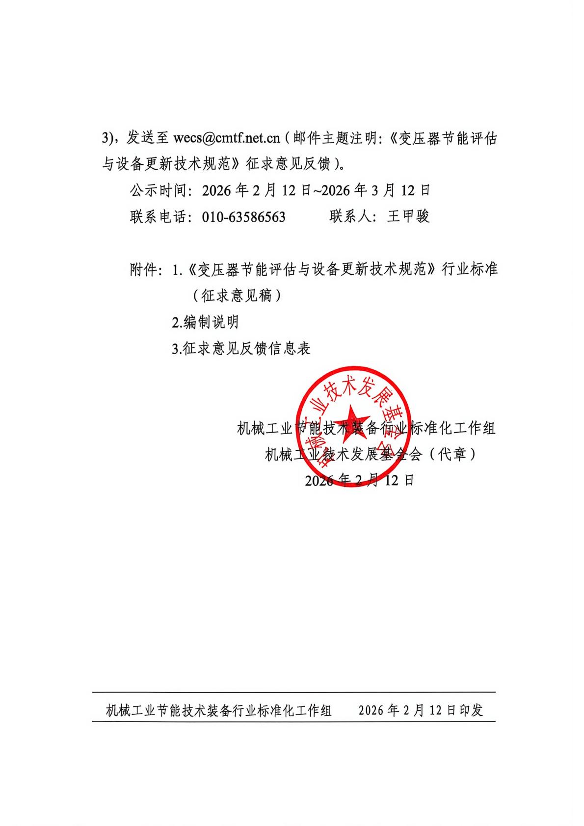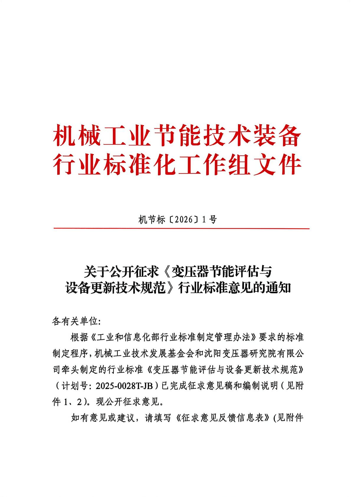 关于公开征求《变压器节能评估与设备更新技术规范》行业标准意见的通知