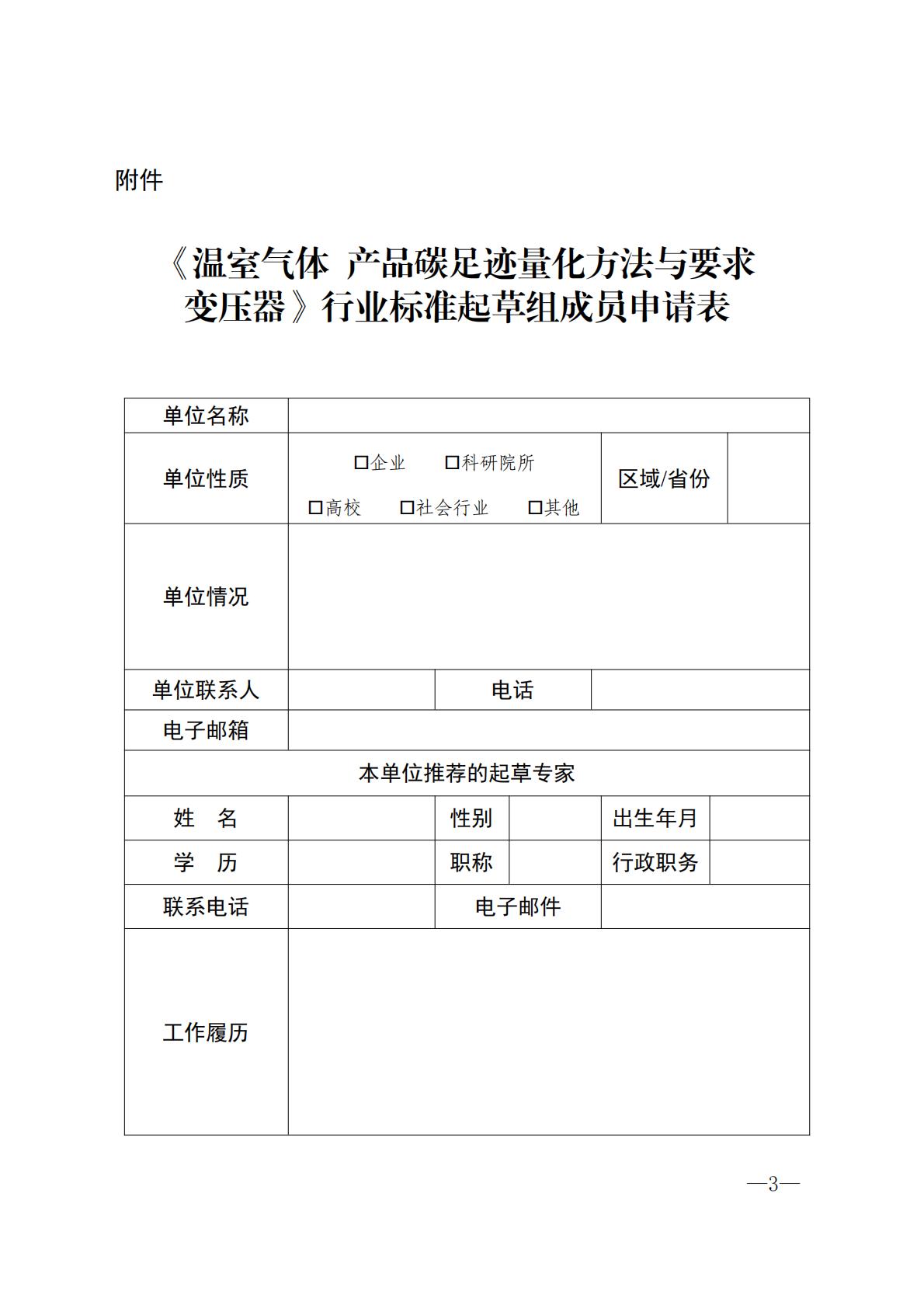 关于征集《温室气体 产品碳足迹量化方法与要求 变压器》行业标准起草单位的通知