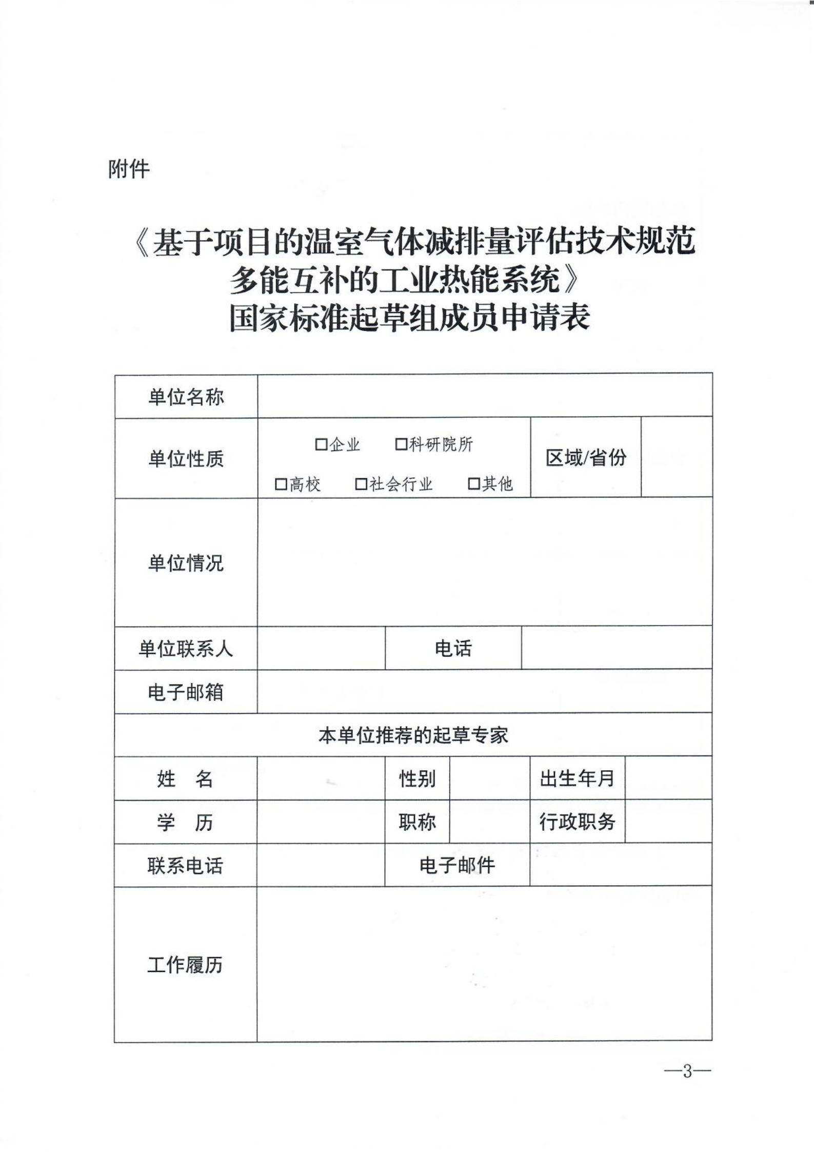 关于征集《基于项目的温室气体减排量评估技术规范 多能互补的工业热能系统》国家标准起草单位的通知